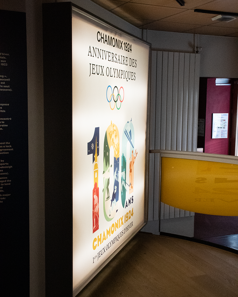 Réalisation de l'intégralité du graphisme et de la scénographie de l'exposition "Chamonix 1924 L'invention des jeux olympiques d'hiver". Suivi de projet jusqu'à ouverture de l'exposition. En collaboration avec Pier design.